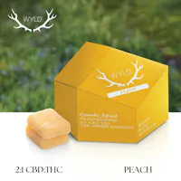 New to edibles? Wyld's Peach 2:1 CBD:THC gummies are made with more CBD than THC, making them a great option for easing into edibles. They are made with real fruit and enhanced with a balanced Hybrid terpene profile that may assist in creating a sense of ease and overall well being. 100mg CBD:50mg THC per package, 10mg CBD:5mg THC per gummy Terpenes: Limonene, Linalool, Alpha-Pinene, Beta-Pinene