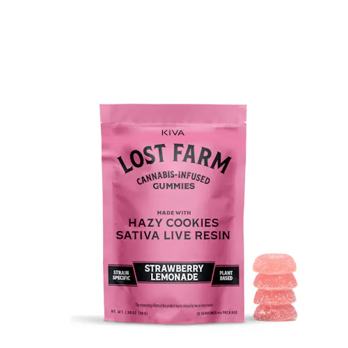 Lost Farm’s Strawberry Lemonade Gummies combine sweet strawberry and tart citrus with a potent infusion of live resin from Hazy Cookies—a rare sativa-dominant hybrid. This 10-pack of strain-specific edibles delivers a layered, full-spectrum experience with uplifting effects that boost creativity and focus. With 10mg THC per piece, this gummy is crafted for the seasoned consumer looking to feel inspired, energized, and elevated.